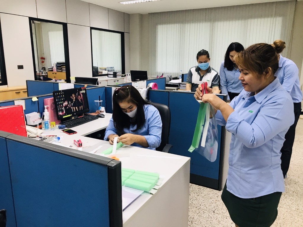 ให้กับทีมบุคลากรทางการแพทย์รวมทั้งเจ้าหน้าที่ผู้ปฏิบัติงาน โดยทางคณะผู้บริหารและพนักงานได้ร่วมกันจัดทำหน้ากาก face shields และนำไปมอบ